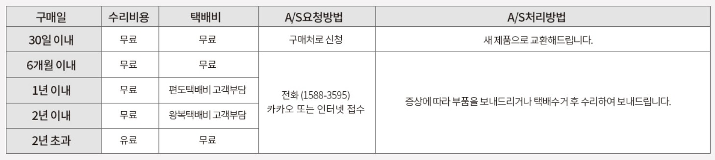 30일 이후 제품은 전화나 인터넷 홈페이지를 통한 카카오톡과 인터넷접수가 가능합니다.
