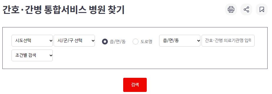 간호.간병 통합서비스 지정병원 찾기