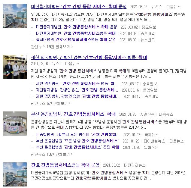 그래서 종합병원.대학병원을 시작으로 점차 환자 간호를 병원내의 전문인력이 24시간 간호.간병하는 서비스를 시작하고 있는데요 아래에서 조금 더 자세히 알아보겠습니다.