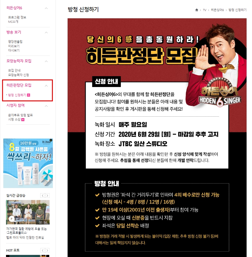 히든싱어 방청신청을 원하시는 분들은 아래 히든싱어 방청게시판으로 가셔서 사연신청 후 추첨을통해 뽑힌 분들에 한해서 방청이 가능하다고 합니다.