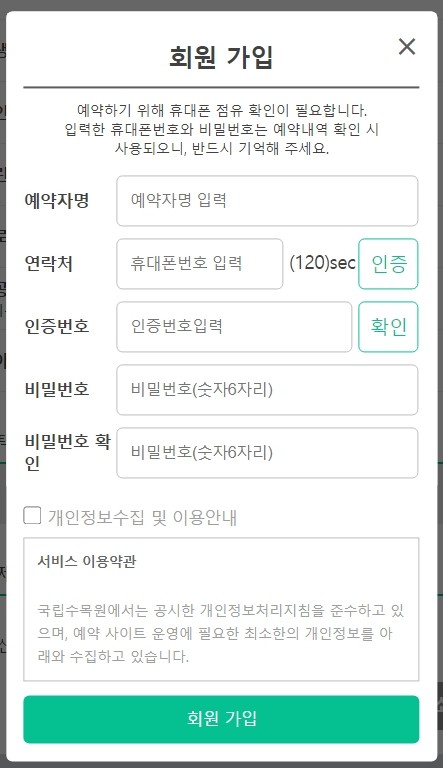 [방문안내]→[예약하기]에서 휴대폰 인증 후 예약이 가능합니다.