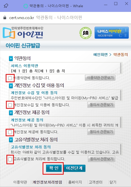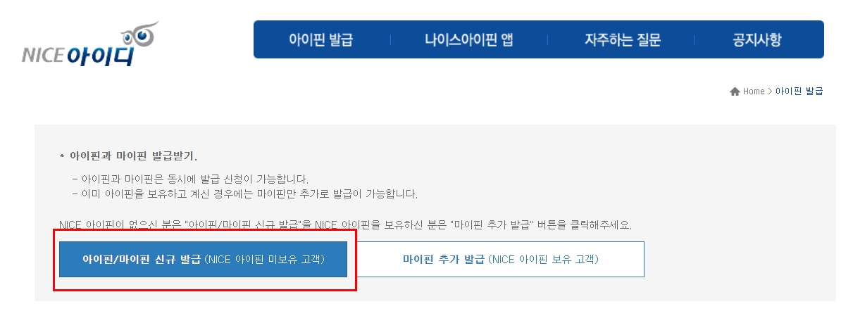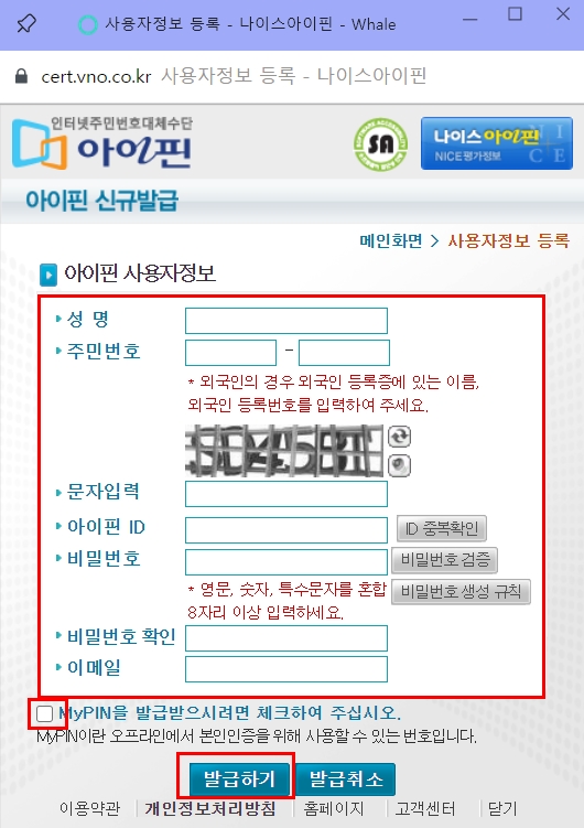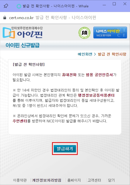 아이핀/마이핀 신규발급 클릭