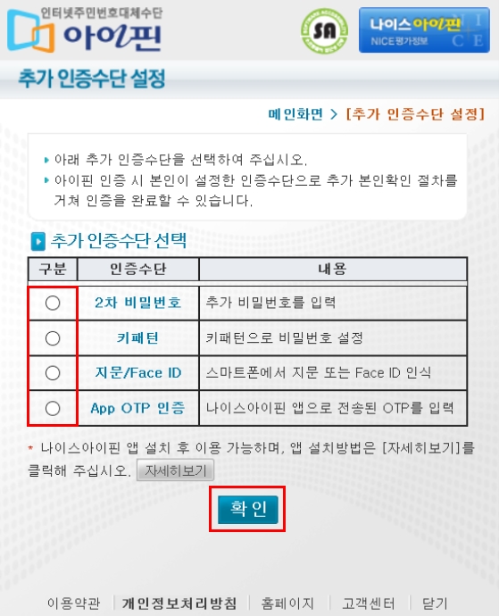 잘 따라오셨나요? 이렇게 마지막 추가인증 수단까지 정하고 나면 나이스 아이핀 발급이 완료되었습니다.