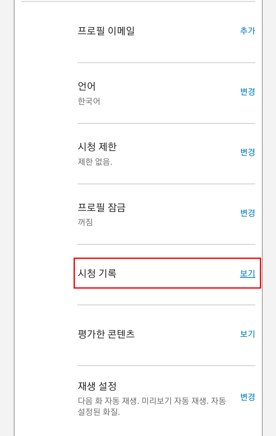 4.'시청기록'을 터치 합니다.