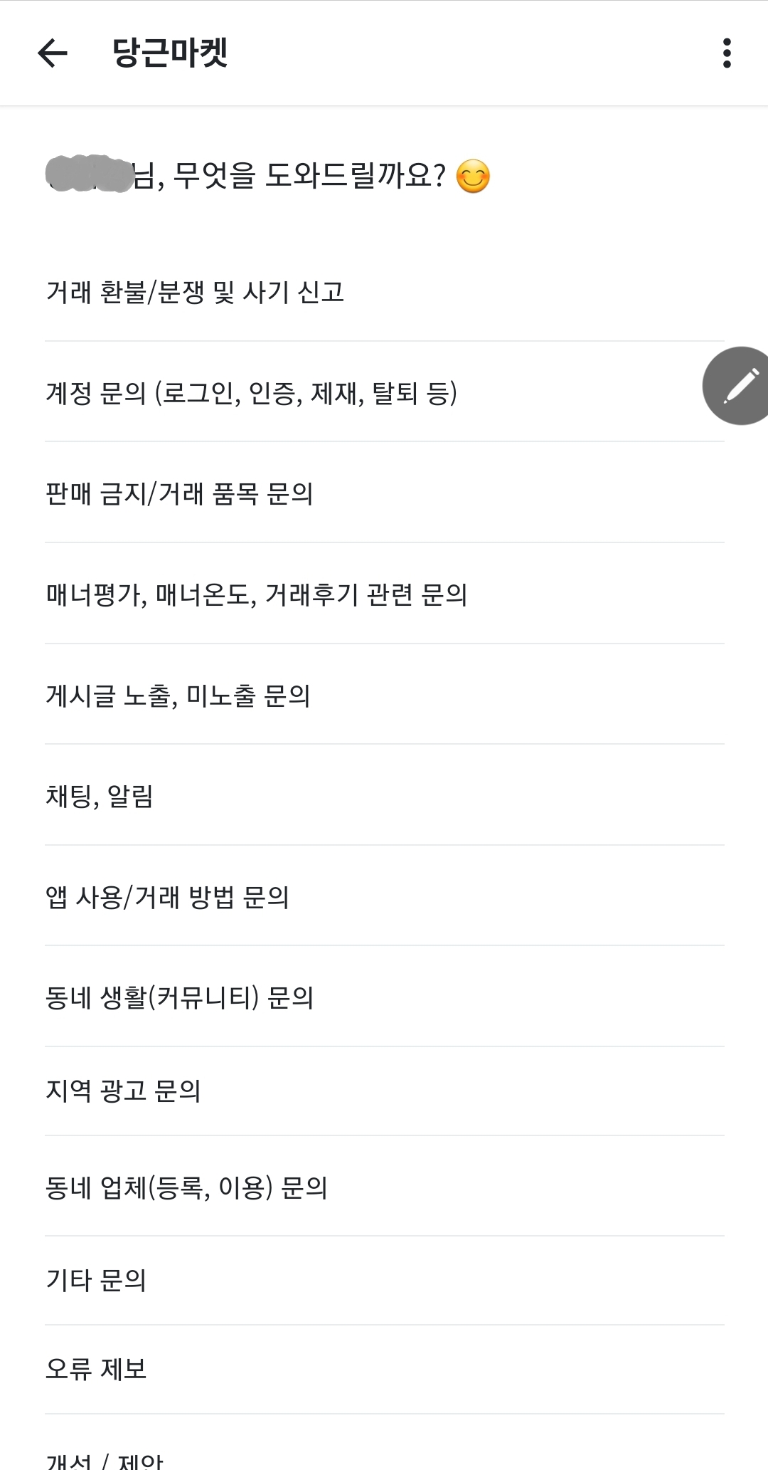 스크롤을 조금만 더 아래로 화면을 내리면 [당근마켓 고객센터에 문의하기]를 찾아 문의글을 남길 수 있습니다.