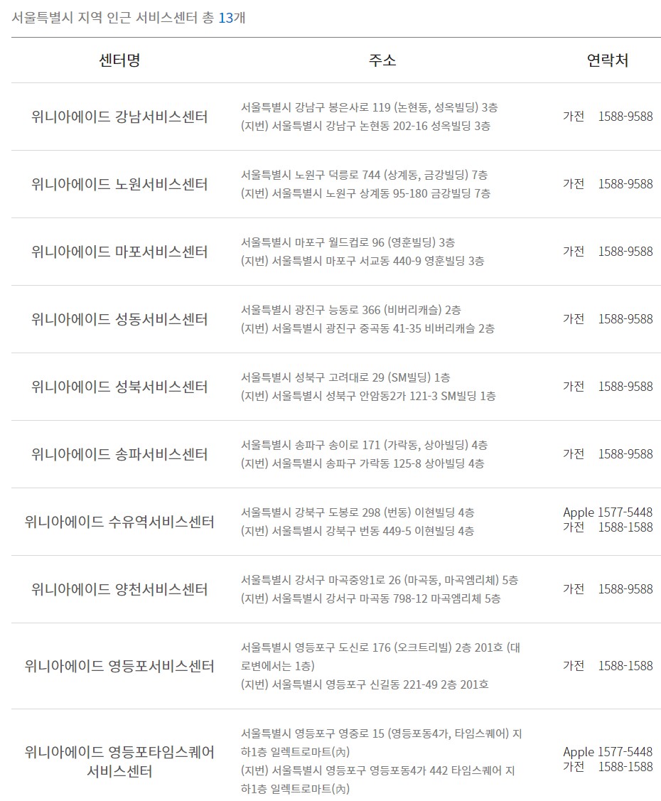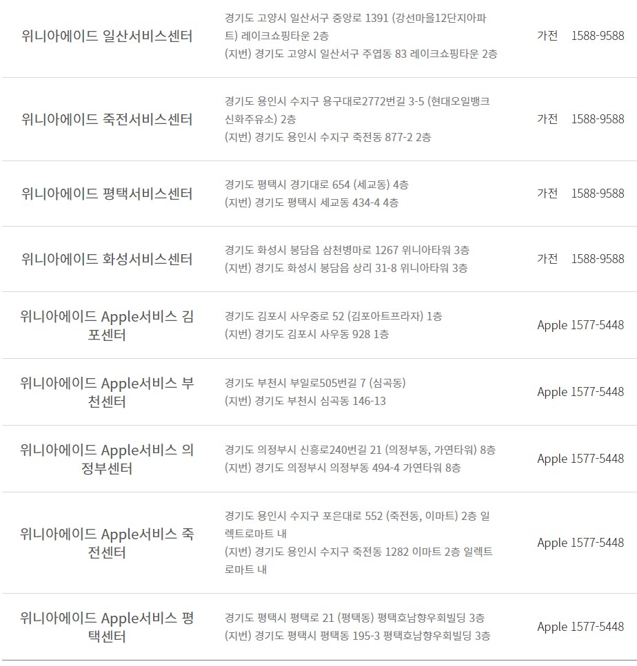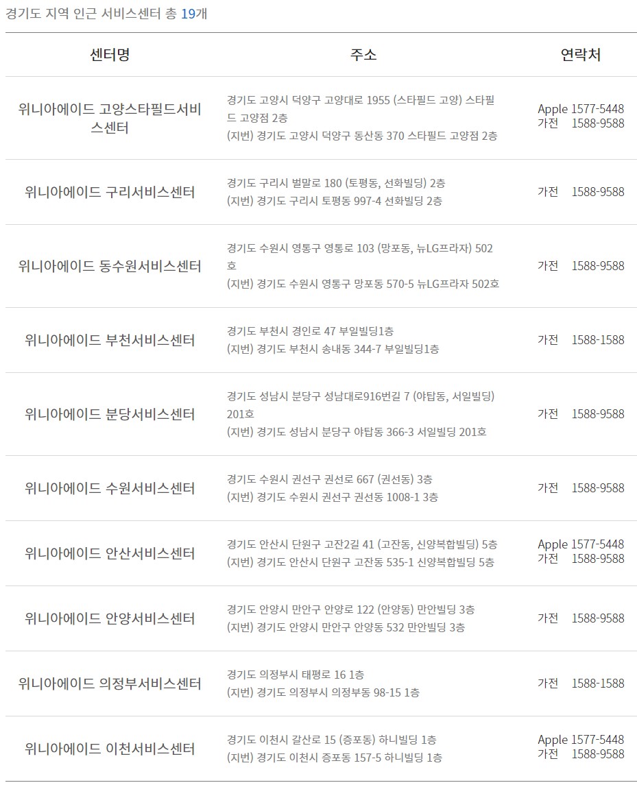 수도권 외 도시들은 아래에서 검색을 이용하여 가까운 서비스센터 주소와 연락처를 확인바랍니다.