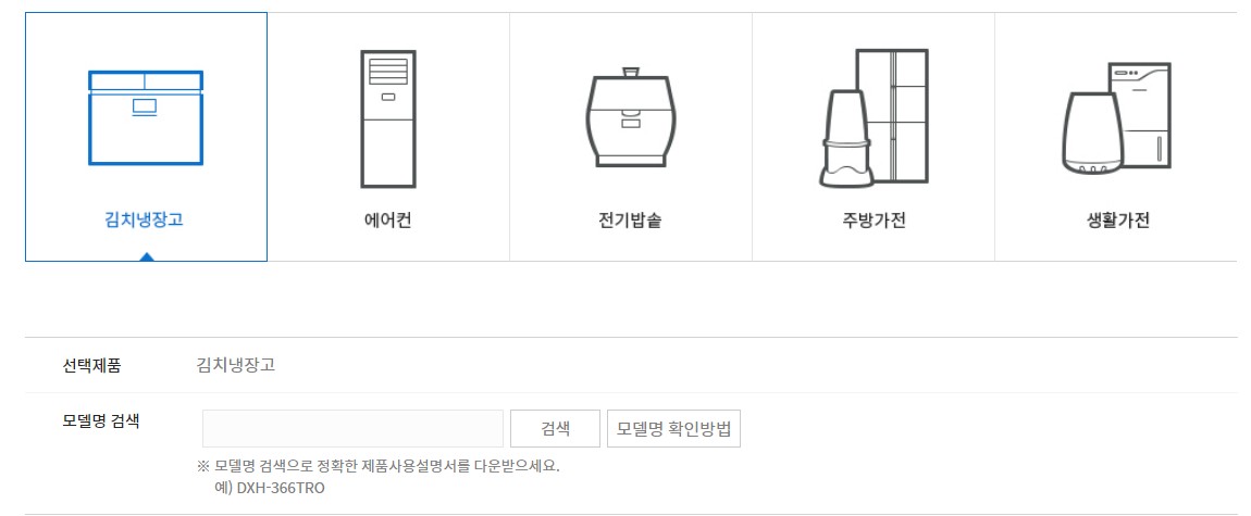 김치냉장고를 포함한 위니아 가전제품의 모델명 검색을 통해서 제품사용설명서를 다운로드 받아보실 수 있습니다.