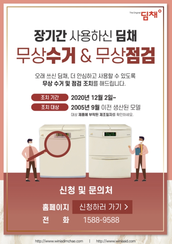 딤채 20주년을 맞이해서 딤채를 있게 해주신 초기모델을 사용중인 고객님께 무상점검으로 감사의 마음을 전합니다.