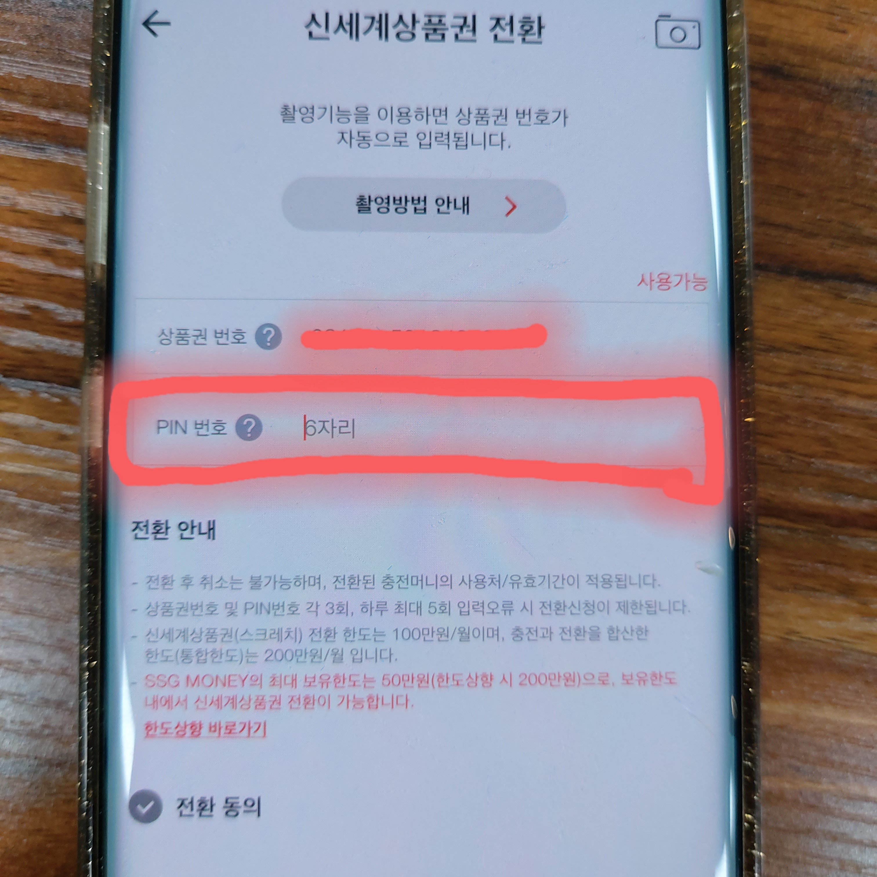 4. 상품권 번호와 PIN번호 입력하기(직접촬영 또는 입력)