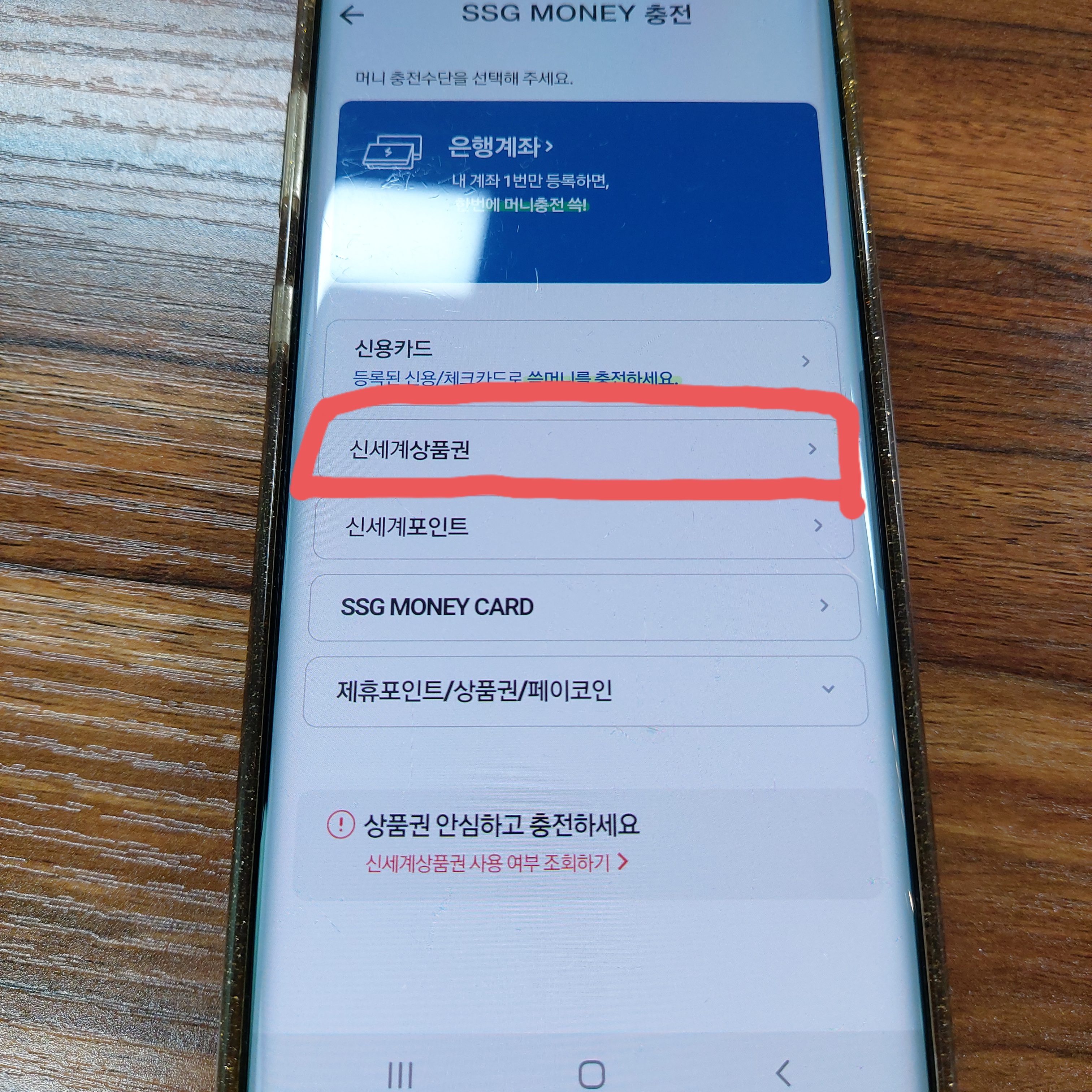 3. 머니충전수단으로 “신세계상품권“ 선택