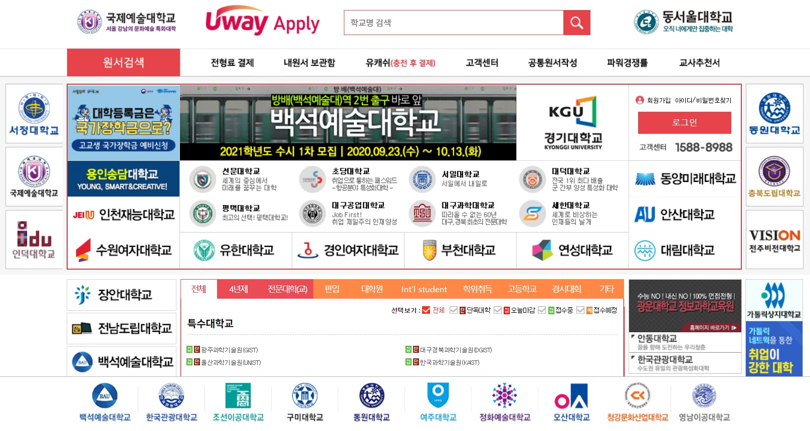 대학 수시·정시·편입·대학원·입학사정관·기타 원서접수, 공통원서접수, 대학경쟁률, 인터넷 원서접수 안내