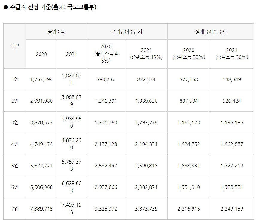 청년 주거급여 분리지급은 기본적으로 현행 주거급여제도의 틀 안에서 이루어지는 것이기 때문에, 해당 가구의 소득인정액이 중위소득 45%이하(보장가구 내 전체 가구원수 기준)여야 합니다.