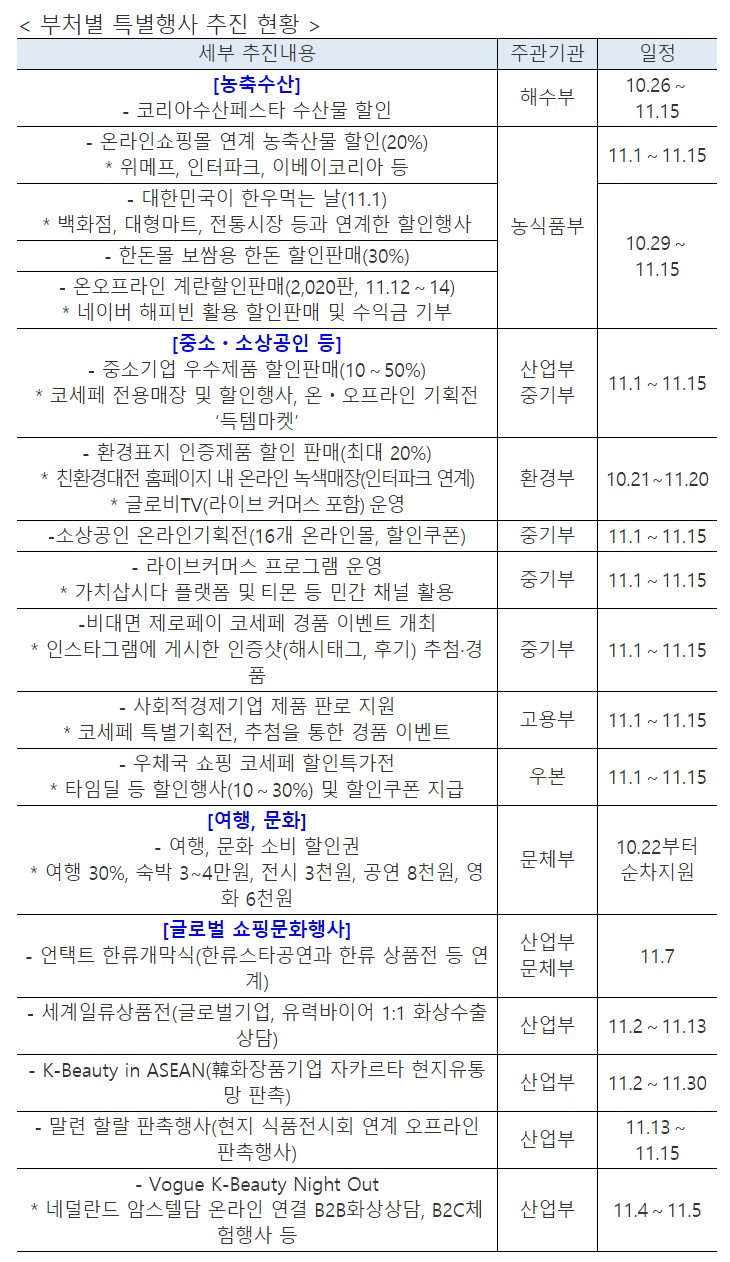 코로나19로 위축된 소비심리를 살리고, 국민경제에 활력을 불어넣기 위해 이번 행사가 마련됐습니다.